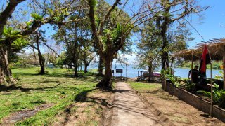 Profitons d’être dans la région pour passer coté lac, direction les iles Solentiname. Retour à San Carlos et embarquons avec José pour 2 jours dans l’archipel de 36 iles situées au sud du lac. Nous passons d’un endroit que nous pouvons considérer comme rustique et hostile à un vrai paradis. Moins d’une heure de navigation après avoir quitté San Carlos, nous voilà dans les eaux tranquiles des iles Solentiname. La réputation de cet endroit n’est plus à faire, beaucoup d’artistes sont venus chercher l’inspiration par ici, et nous comprenons pourquoi. Il n’y a pas de touristes, pas d’infrastructures immondes, juste des petits ilots habillés de petites maisons. C’est vert et fleuri partout et les gens qui y vivent transpirent la paix.