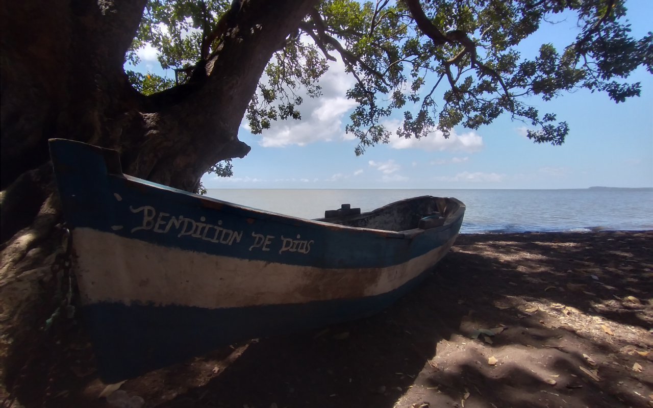 « – Pas de visions, ni de prévisions, c’est l’occasion de descendre à Ometepe rencontrer nos partenaires historiques ! » avait glissé Maelle. Je n’avais pas réagi et tentais de me rappeler les souvenirs que j’avais de cette île plantée au milieu du lac Nicaragua, le lac Cocibolca et ses deux énormes volcans, son isthme et sa nature luxuriante. J’avais gardé un souvenir spécial de cet endroit. Je me souviens que beaucoup de personnes passées par là évoquaient l’expérience vécue et l’énergie ressentie sur l’ile la plus grande du lac. Accessible en ferry, rapide et « safe », on se retrouve rapidement au port de Moyogalpa, petit chef-lieu de l’ilot et de sa poitrine ennuagée.